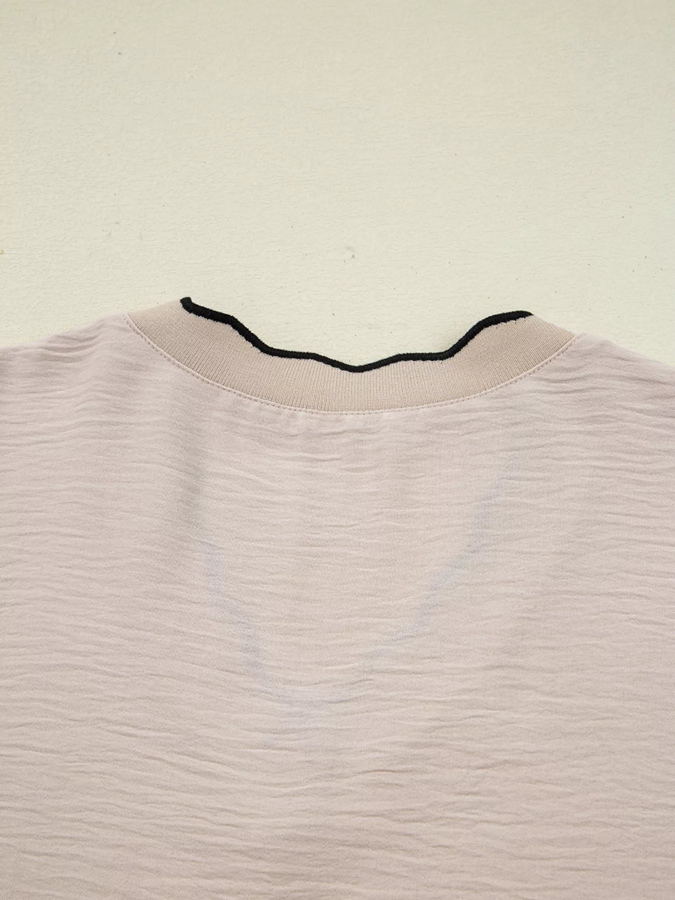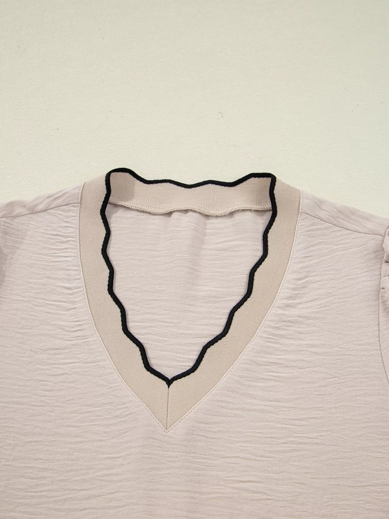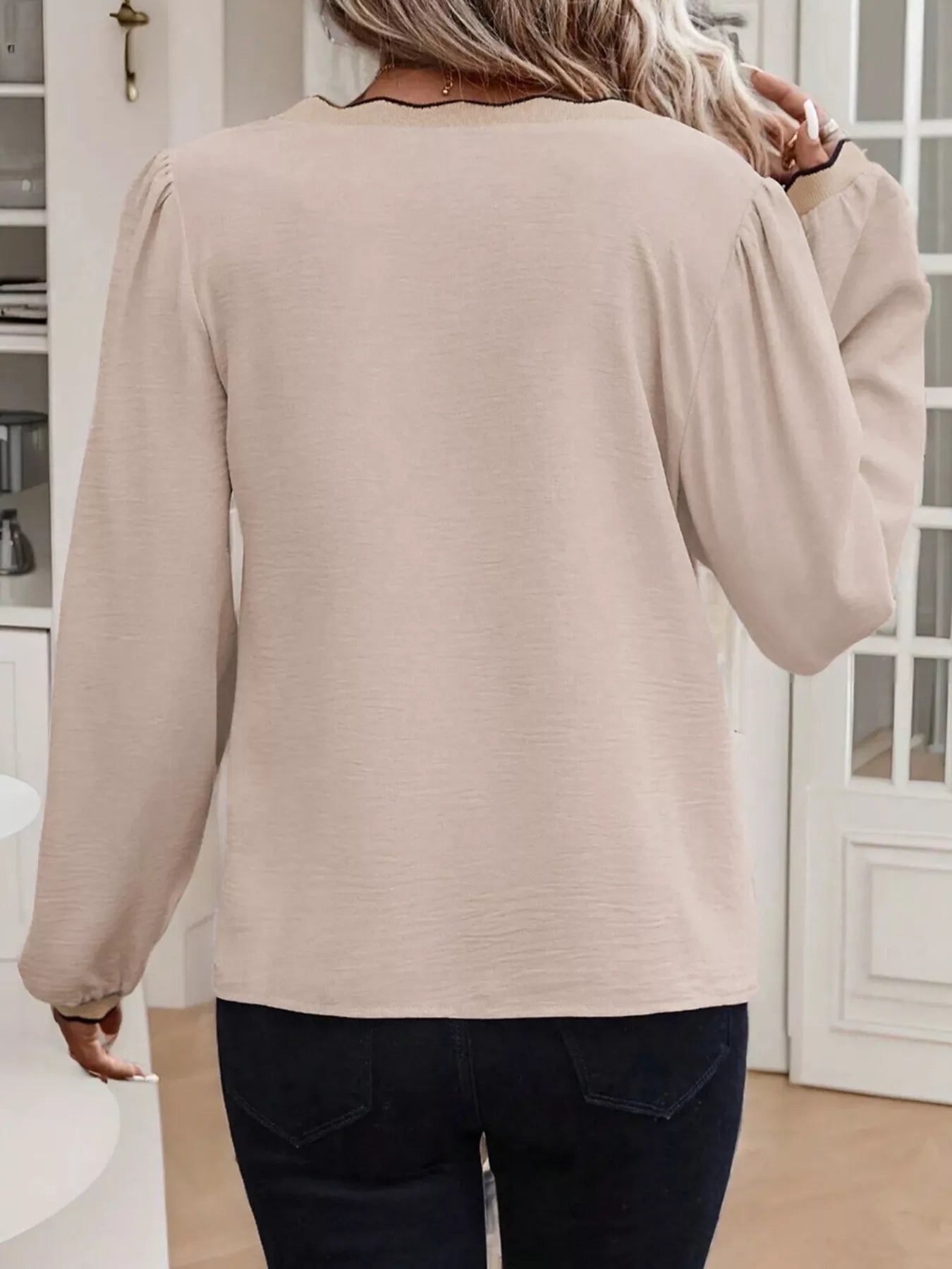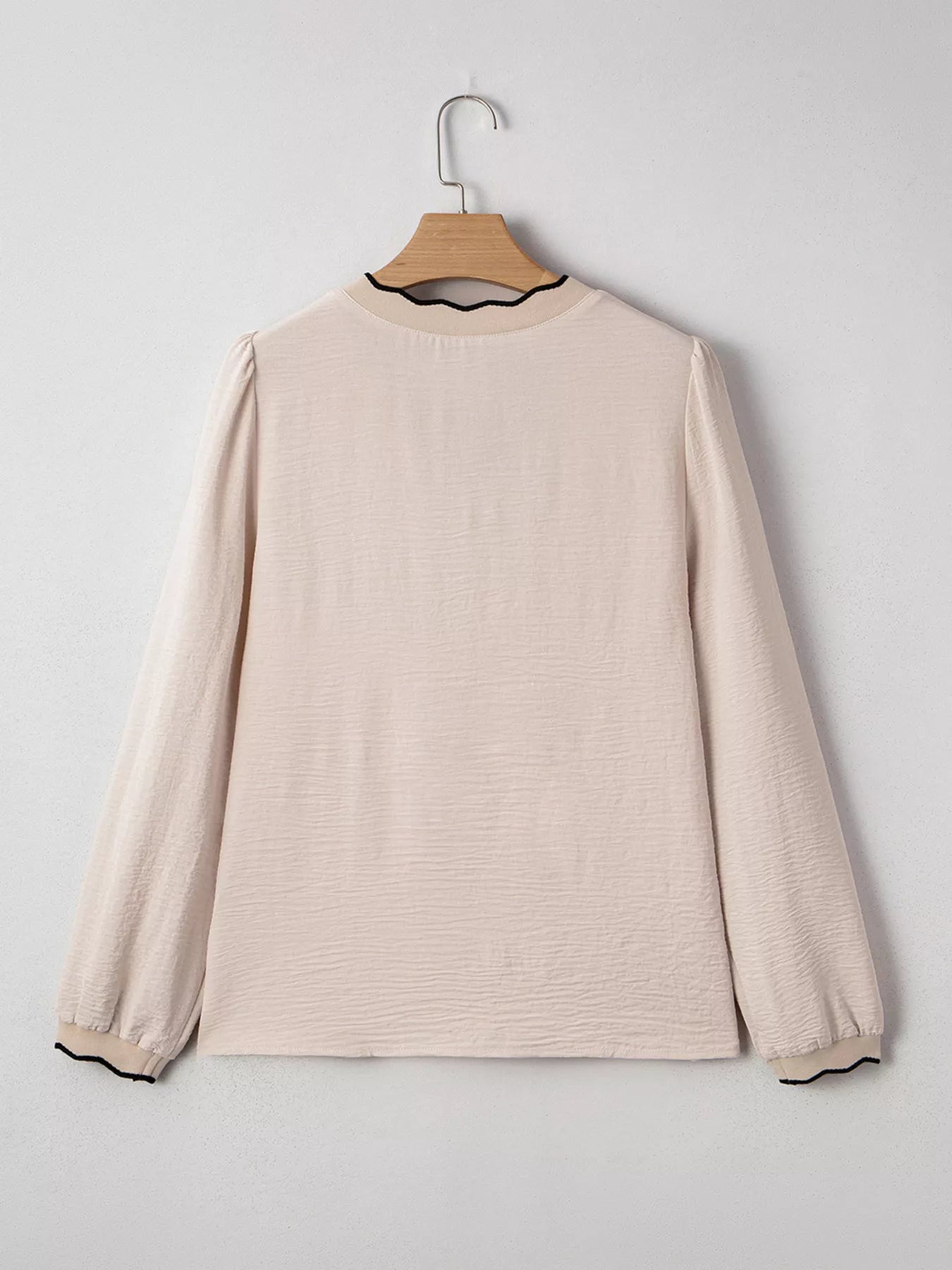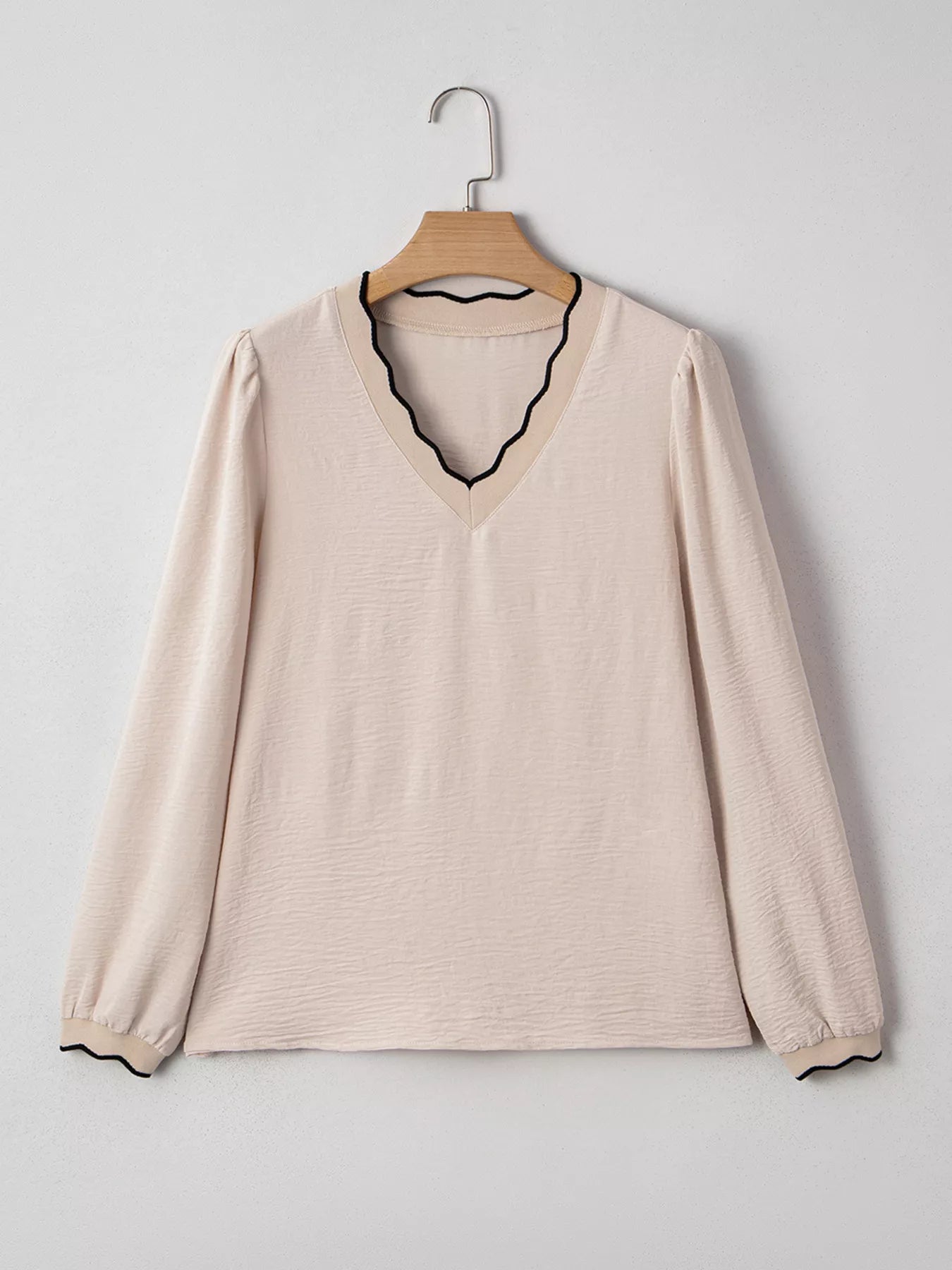 Contrast Scallop Trim V Neck Long Sleeve Blouse