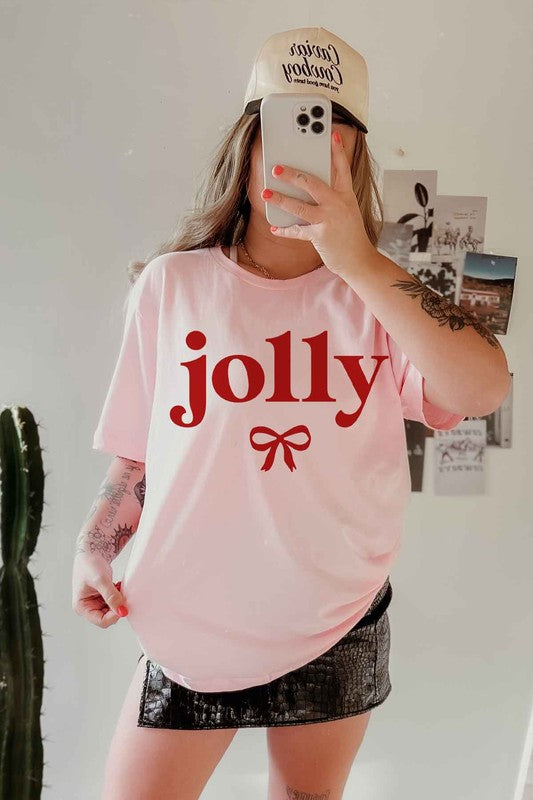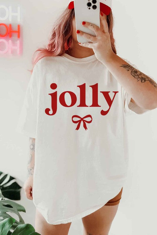 JOLLY CHRISTMAS BOW OVERSIZED GRAPHIC TEE
